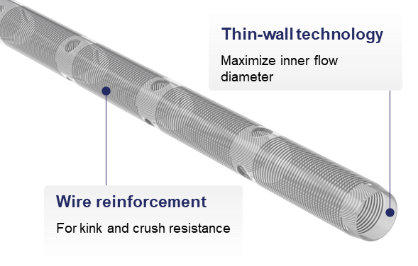 Thin-walled technology optimizes flow while maintaining crush and kink resistance.